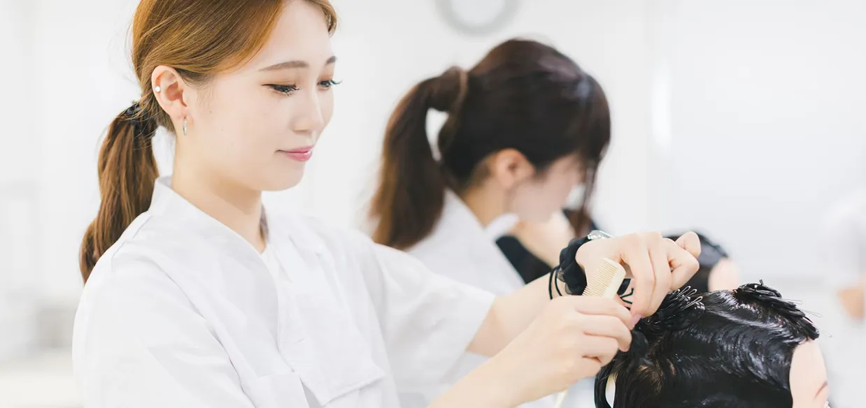 経験豊かなプロが最新トレンドや高い技術力を伝授。 お客様の「トータルビューティー」を叶えるために、 就職はもちろん独立開業もめざせる人材を育成します。