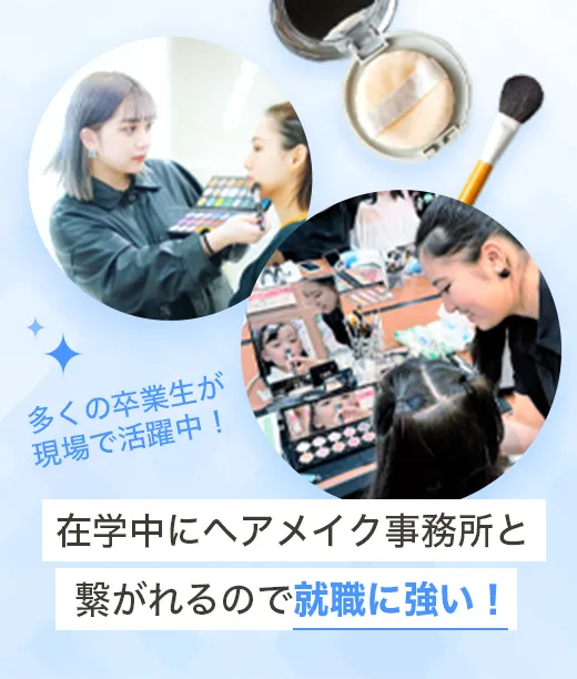 圧倒的な現場実習時間で、トップレベルのヘアメイクアップアーティストへ!ヘアメイク技術と美容師国家資格でヘアメイク現場への就職を目指す!