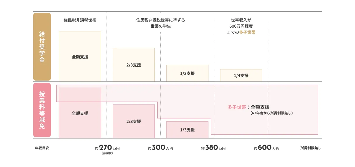住民税非課税世帯とそれに準ずる世帯・多子世帯等の学生が対象