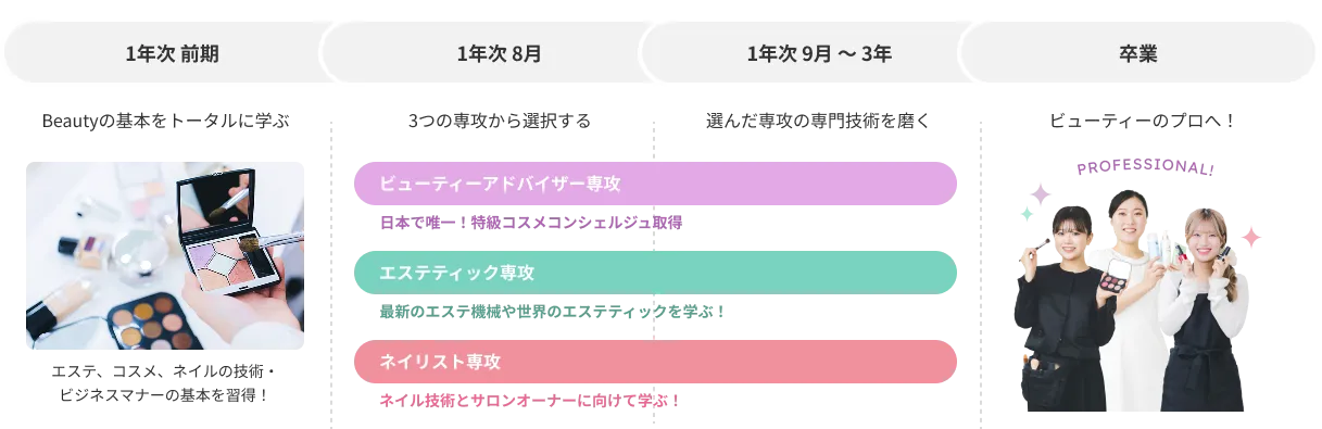 メイク・ネイル・エステを全部学んでから選べる